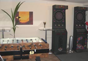 Dartkästen und ein Tischfussball